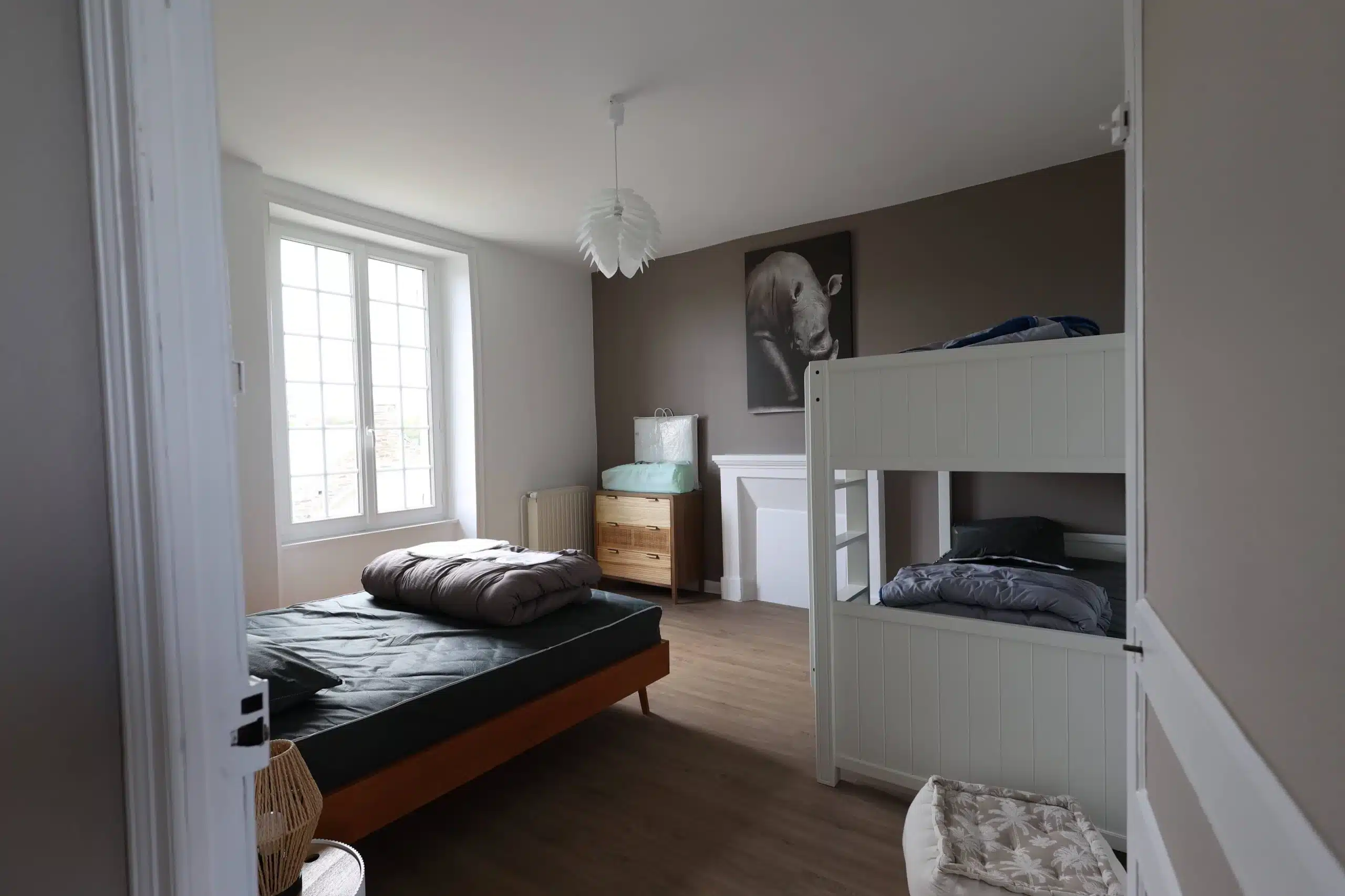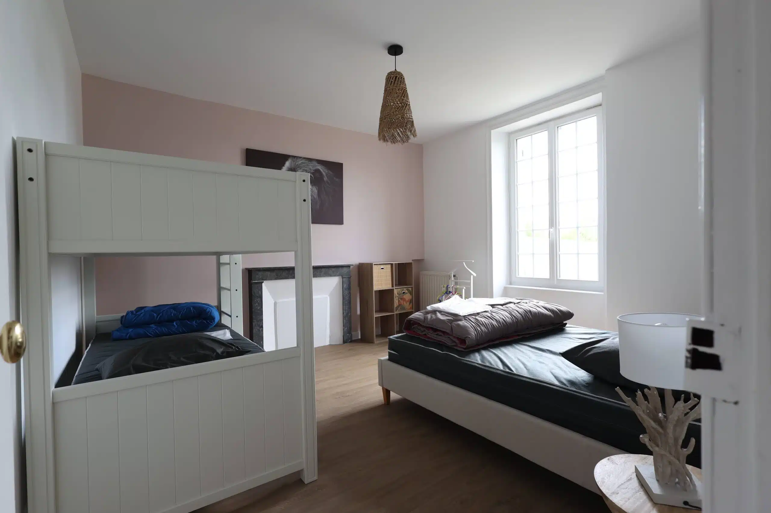 - 1 chambre : 1 lit 140×200 + 2 lits superposés 90×200